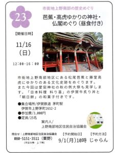 令和7年11月16日(日)12時から、地域創生部会主催による『伊賀ぶらり体験博覧会』市街地上野南部の歴史 芭蕉・高虎ゆかりの神社・仏閣めぐりを開催しました。