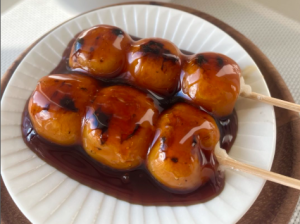 散策後は伊賀米を使った、「朝日餅」のみたらし団子をお土産にお持ち帰りいただきました。
