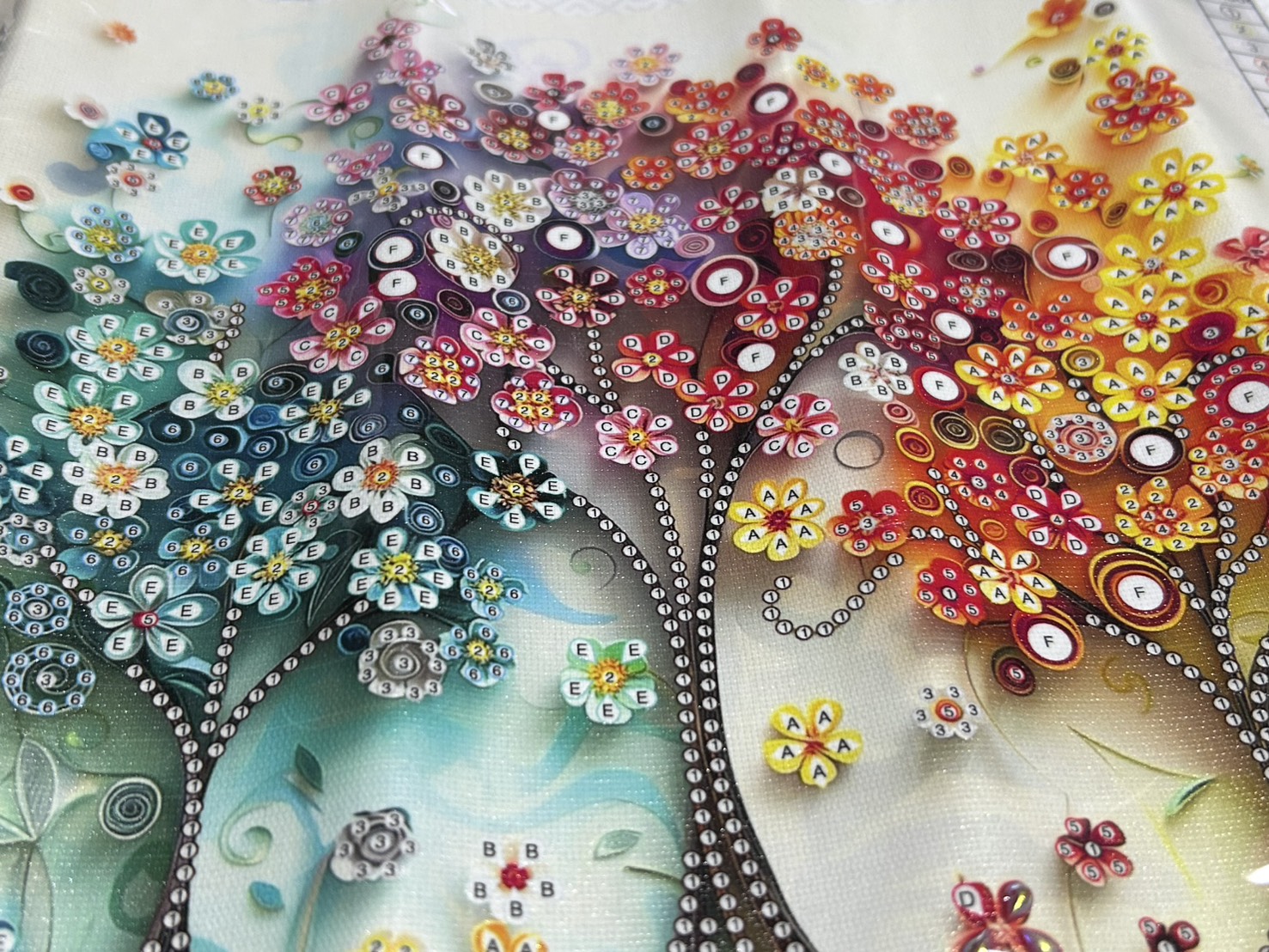 今回は、前回からの続きで「花と鳥」「曼荼羅」を進められる方と、新たに3作品目の「フラワーツリー」に取り組まれる方とで制作を進めていただきました。