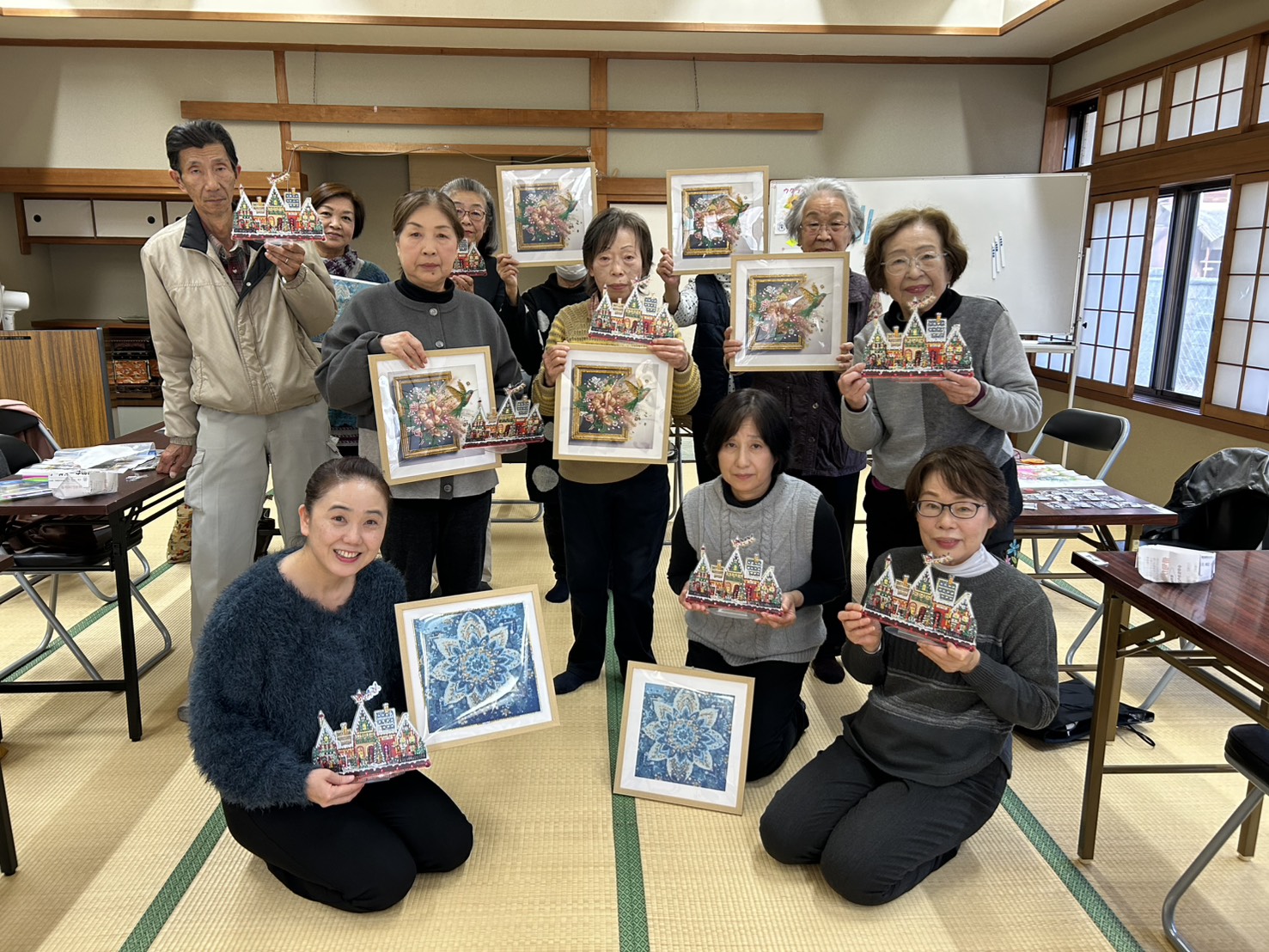 完成された作品を持って記念撮影