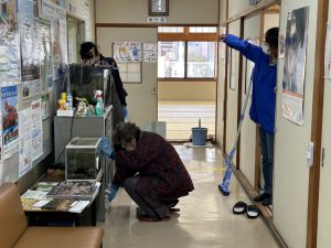 ご利用していただく方が気持ちよく使っていただけるよう、普段は職員が掃除をしていますが、皆さんにご協力いただいて蛍光灯の拭き掃除や畳の拭き掃除など、きめ細かなところまで掃除ができました。本当にありがとうございました。