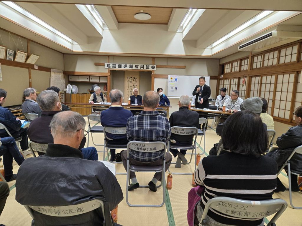 令和8年3月12日(木)19:30から上野南部地区市民センターで、「南平野木興線建設促進期成同盟会」総会が開催されました。
